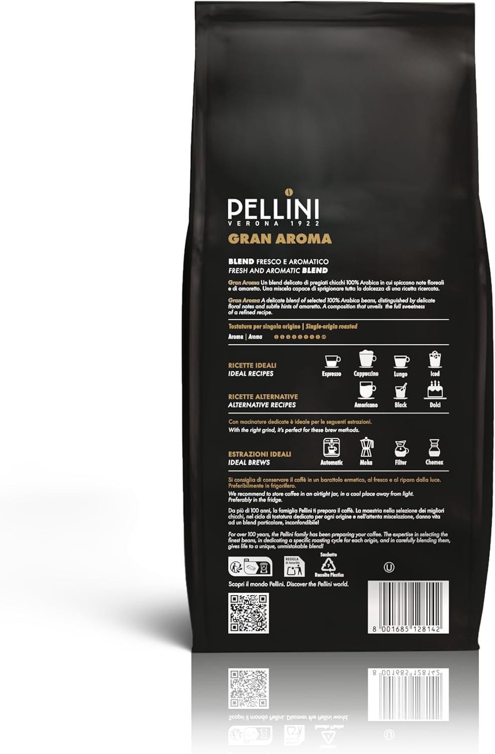 PELLINI N.3 GRAN AROMA: Boabe de cafea Pellini, speciale și cu un gust inconfundabil, într-un pachet de 1 kg. Un espresso autentic, exact ca la cafenea