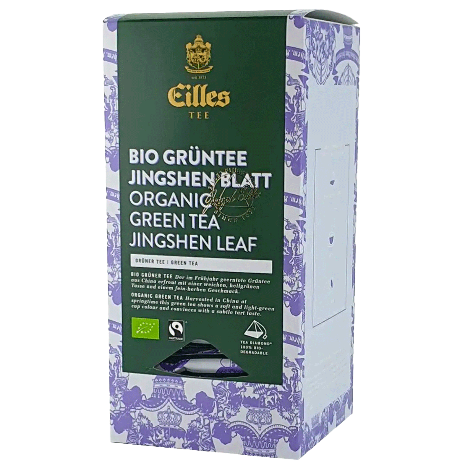 Ceaiul verde din China, recoltat primăvara, are o textura usoara, de culoare verde deschis și un gust fin și acrișor. Volum de livrare: EILLES World Luxury Selection impresionează prin cutia dispenser elegantă, umplută cu 20 de porții individuale (50 g în total). Cutia de carton verticală facilitează distribuirea porției cu porție, iar zona de ceai din bucătărie arată minunat de ordonată. Fiecare porție individuală de ceai este sigilată într-un ambalaj de protecție pentru a-și asigura aroma. Aroma rămâne perfect protejată până la prepararea ceaiului și oferă cunoscătorului gustul deplin. Diferența față de ceaiurile care zac la vedere în ambalaje în vrac este semnificativă. Nu e de mirare de ce EILLES World Luxury Selection este alegerea cunoscătorilor de ceai.